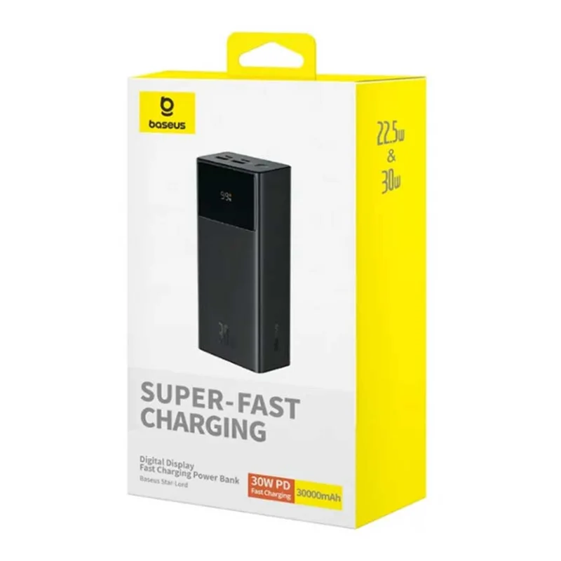 ۳ پورت خروجی شامل ۲ پورت USB و یک پورت تایپ سی - ظرفیت اسمی ۳۰۰۰۰ میلی آمپر ساعت - توان خروجی ۲۲.۵ وات - وزن ۶۴۸ گرم - علاوهبر قابلیت شارژ همزمان ۳ وسیلهی الکترونیکی - پشتیبانی از پروتکل های SCP و FCP هوآوی، PD اپل، QC شیائومی و AFC سامسونگ